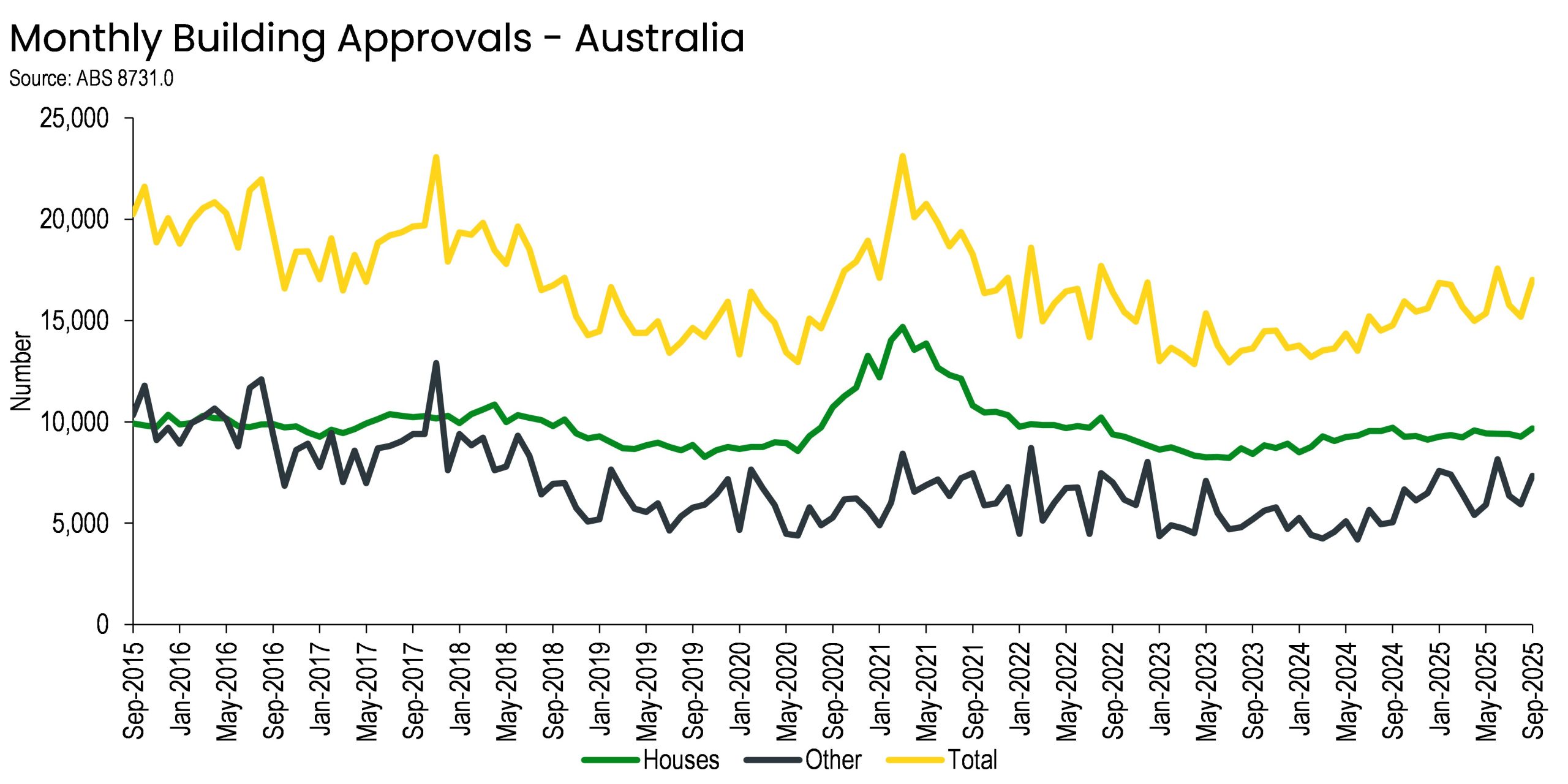 Australia’s building industry is showing renewed signs of strength, with new data revealing a 12 per cent rise in building approvals in September 2025.